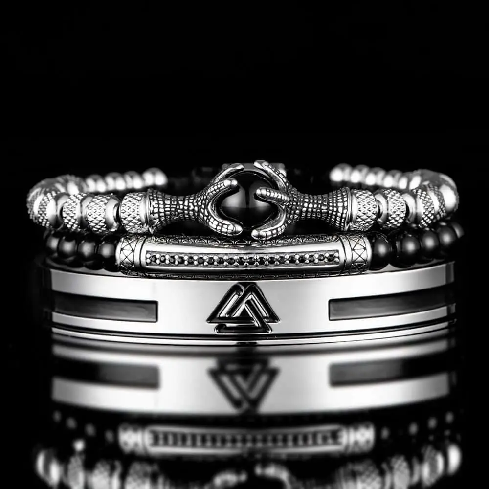 Känn kraften från de nordiska gudarna runt handleden med detta djärva och robusta armbandsset. The Vikings Warrior Bracelets är skapade för dem som går med styrka och stil. Tillverkade av hållbart rostfritt stål och premiumpärlor, varje del har Viking-inspirerad design som kräver uppmärksamhet.