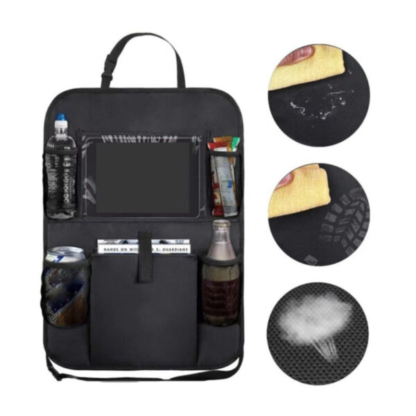 Baksätesorganisatören för bilen har en genomskinlig ficka för surfplatta med pekskärm som passar surfplattor upp till 10 tum. Det genomskinliga locket gör det enkelt att styra enheten, så att barnen kan njuta av videor och spel under resan utan att ta bort surfplattan från hållaren.