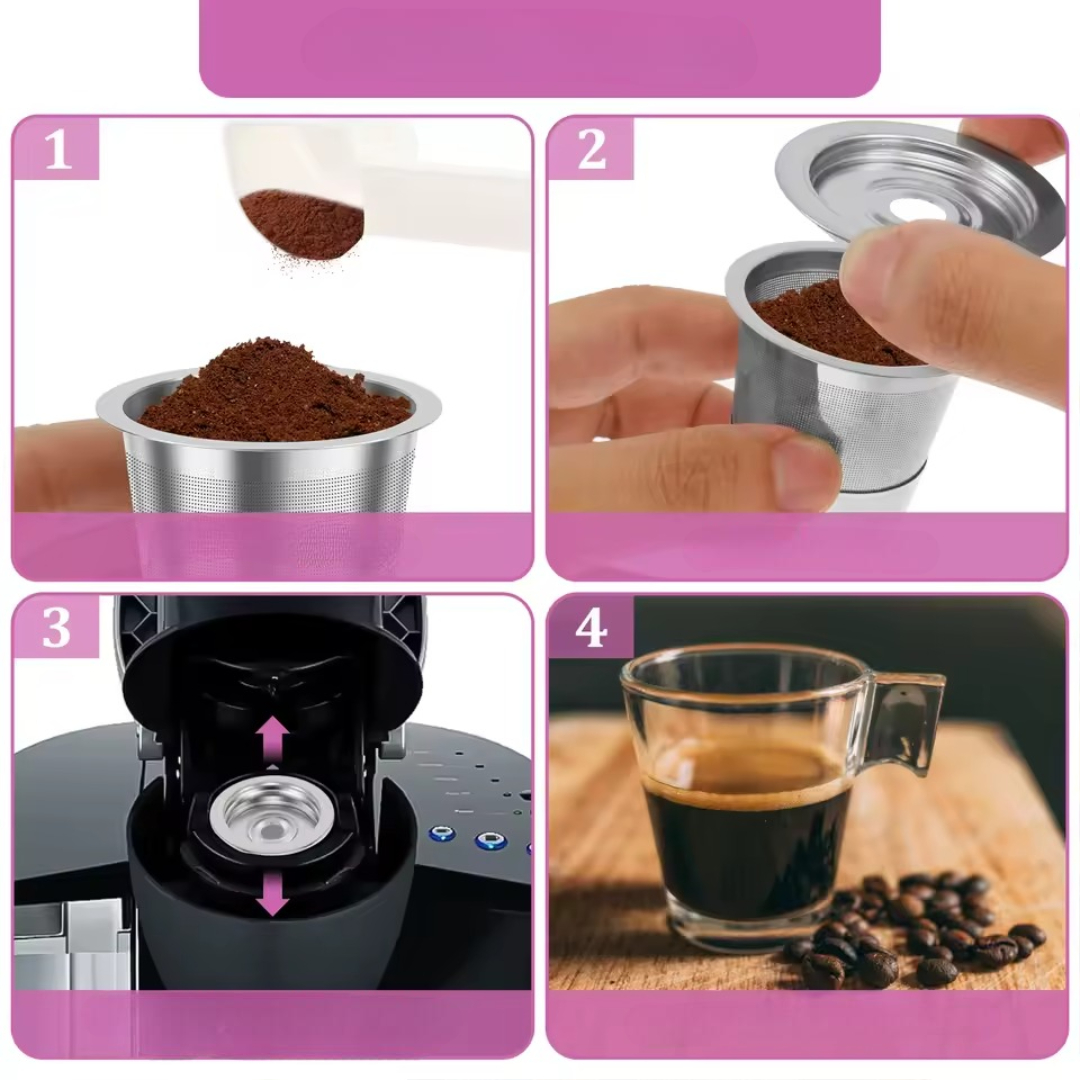 Den här återanvändbara kaffekapseln ger dig en renare, grönare och mer utsökt kaffeupplevelse. Den är tillverkad av hållbart rostfritt stål med en smart nätdesign och låter dig njuta av dina favoritsorter samtidigt som du slipper engångskapslar och pappersfilter.