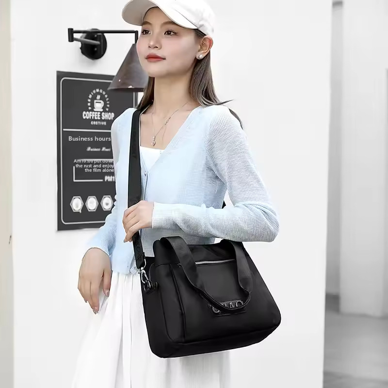 Denna lätta axelremsväska är byggd för hektiska dagar och enkelt mode. Med flera fickor med dragkedja, vattenavvisande tyg och en justerbar rem är den den perfekta följeslagaren för ärenden, resor eller vardagsanvändning.