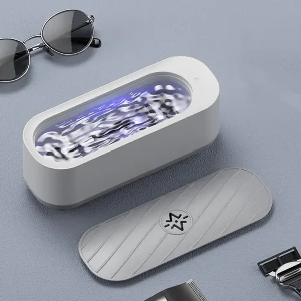Den bärbara ultraljudsrengöraren använder högfrekventa vibrationer för att avlägsna smuts och damm från även de minsta skrymslen. Denna teknik gör det enkelt att rengöra smycken, glasögon, proteser och mycket mer, vilket garanterar en grundlig och snabb rengöring.