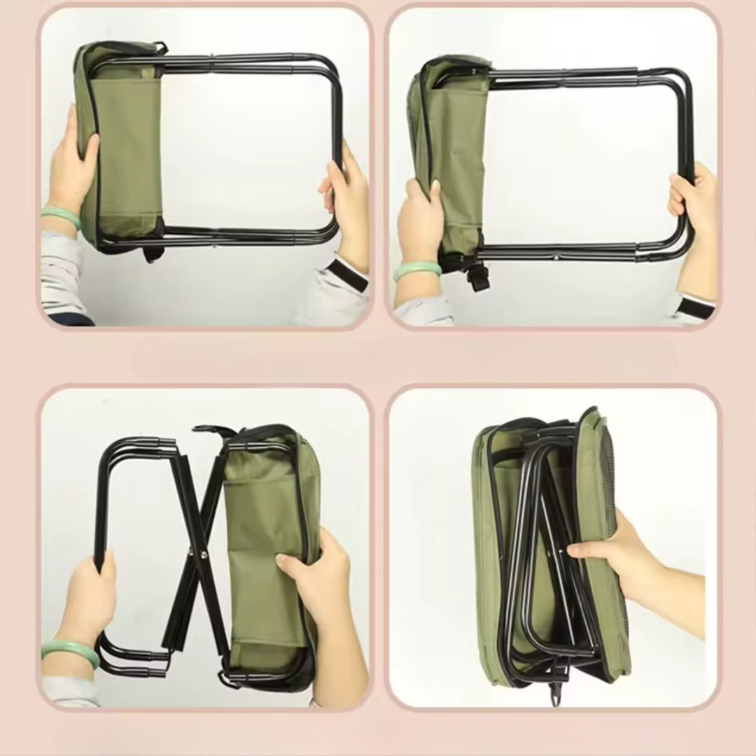• Design: Kompakt hopfällbar pall för resor och utomhusaktiviteter