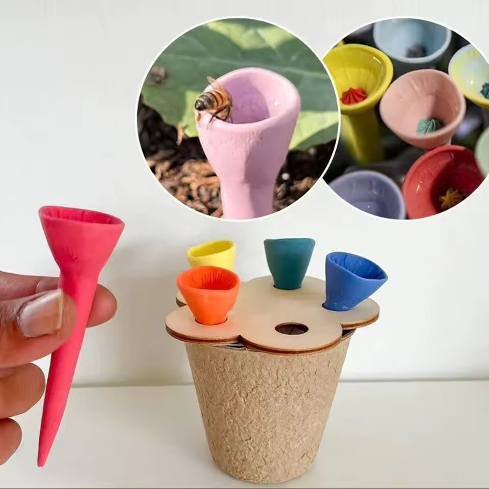 De här färgglada vattenkopparna för bin är utformade för att ge bin en säker och enkel plats att dricka vatten på. Fyll dem bara och placera dem nära dina blommor – perfekt för trädgårdar, balkonger eller uteplatser!