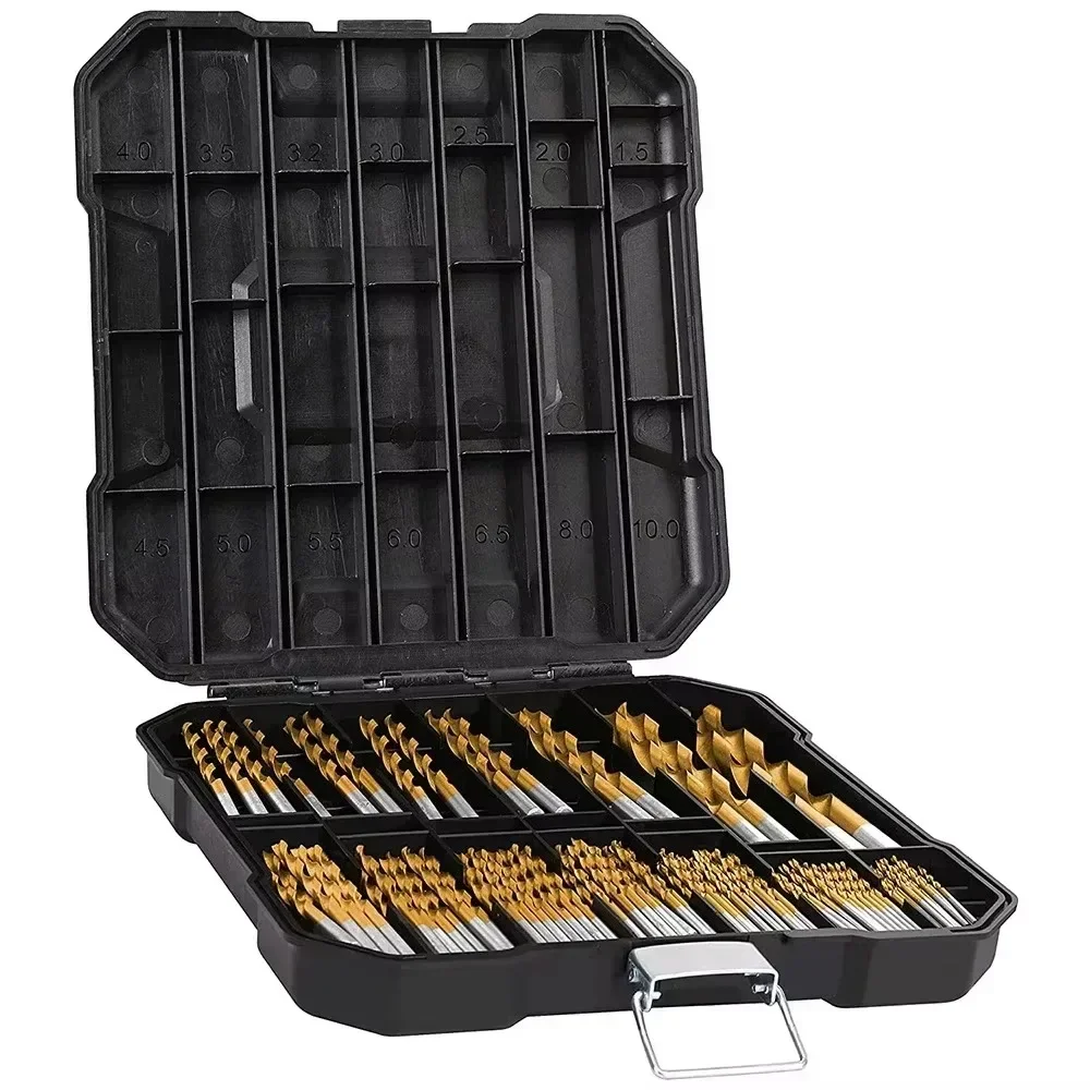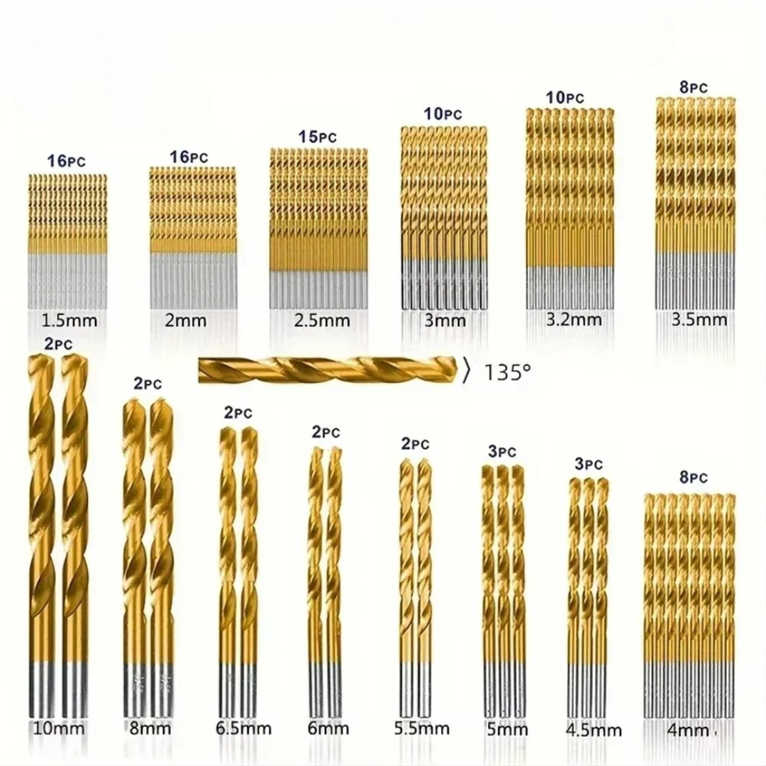 Den här titanbelagda borrkronesatsen med 99 delar ger dig alla storlekar du behöver för trä-, metall- och plastprojekt. Dessa borr är byggda för hållbarhet och precision och håller sig vassa längre och ger renare hål – även vid frekvent användning.