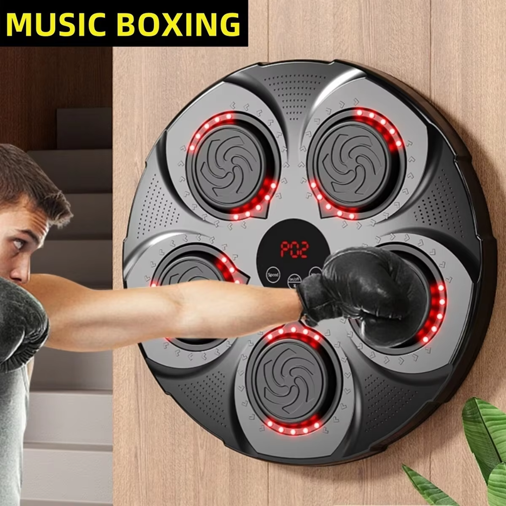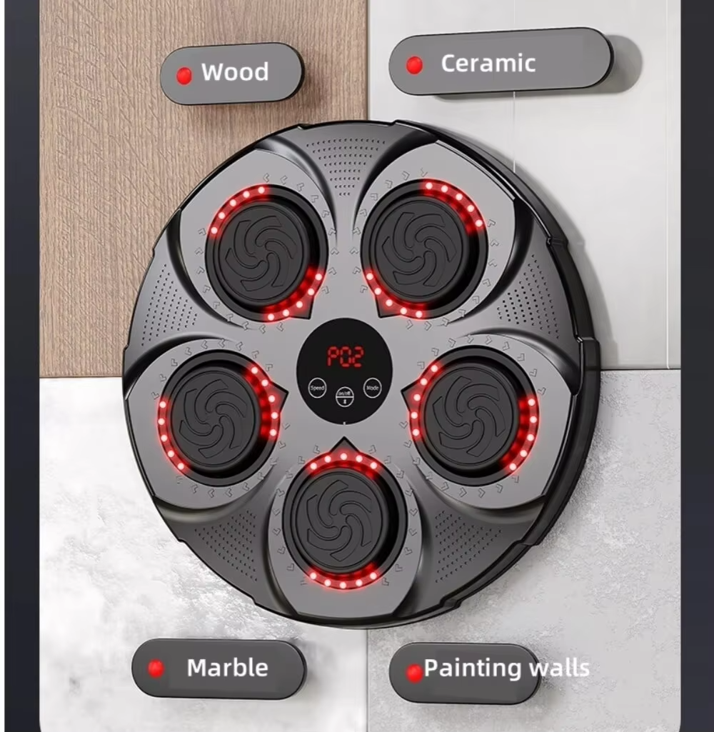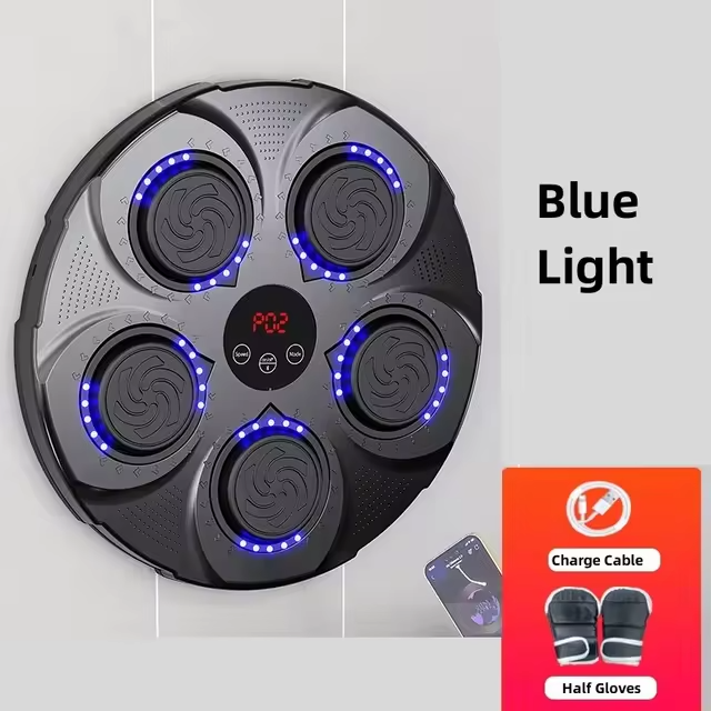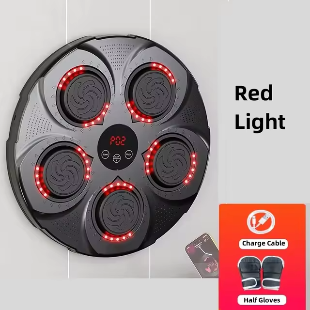 Boxningsmaskinen kombinerar träning och underhållning genom att synkronisera blinkande lampor med bakgrundsmusik. Användarna kan slå i takt med rytmen, vilket skapar ett roligt och engagerande träningspass som förbättrar fokus, koordination och reaktionstid.