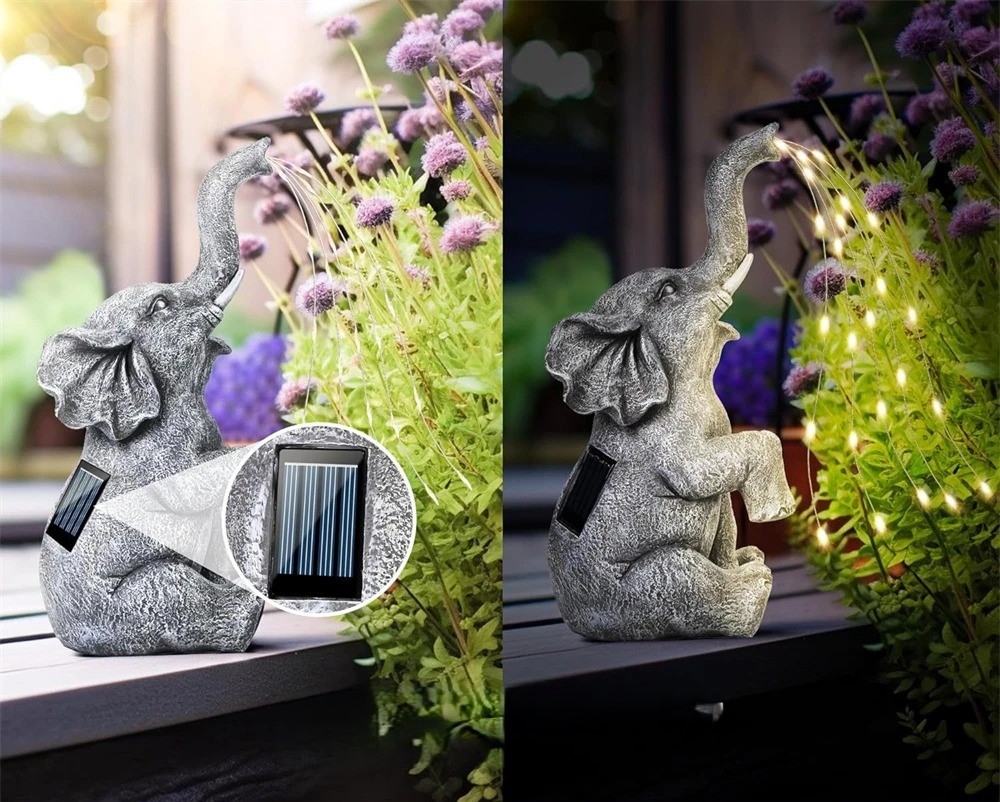 Elefantlampan tänds automatiskt på natten och släcks under dagen. När den utsätts för solljus i 6-8 timmar är den helt uppladdningsbar och kan lysa i 8-10 timmar. Denna praktiska funktion gör att du inte behöver oroa dig för att manuellt sätta på eller stänga av den.