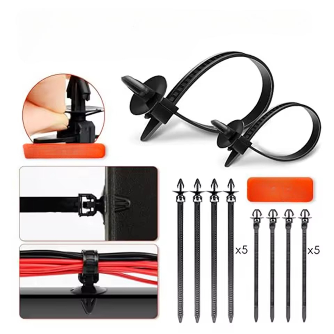 • Innehåller: Hållarklämmor, tryckfästen, buntband