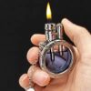Den här tändaren är tillverkad av högkvalitativa koppar- och mässingsmaterial och ger en hållbar och gedigen känsla. Kugghjulsdesignen gör det enkelt att använda slipskivan, vilket garanterar en sömlös tändningsupplevelse.