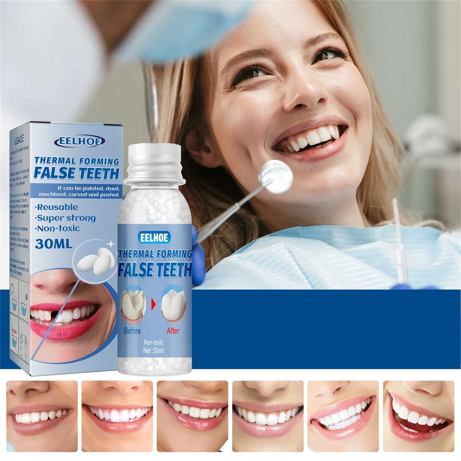 Omedelbar förbättring av ditt leende: Formbara granulat fyller gap beroende på saknade eller trasiga tänder, vilket ger en tillfällig lösning för att naturligt förbättra ditt utseende.