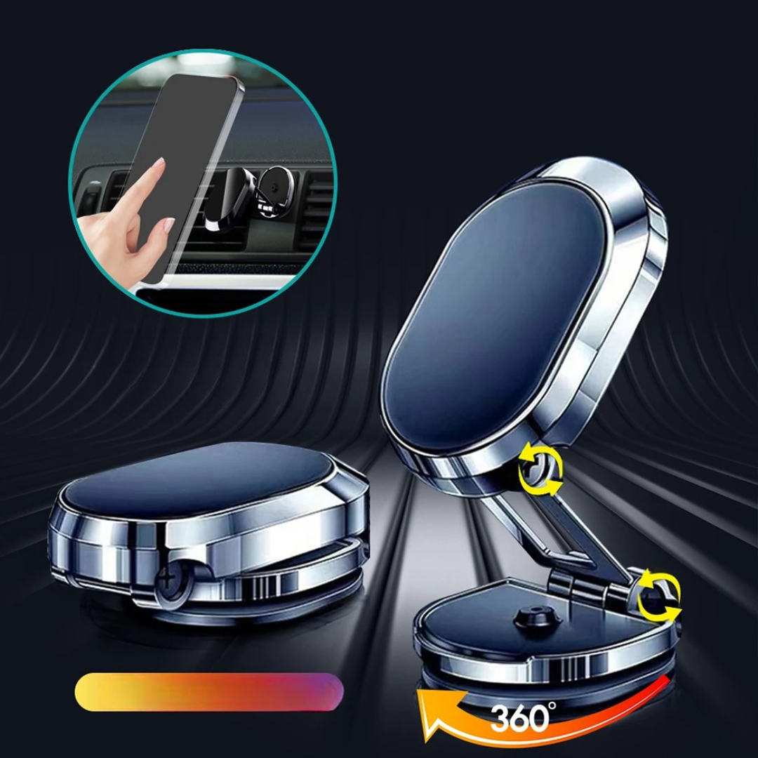 Den här vikbara magnetiska biltelefonhållaren ger dig en stabil, handsfree vy över din telefon. Med starka magneter, 360 ° rotation och en elegant design låser den din enhet på plats och justeras till alla vinklar – inget mer halkande, fumlande eller distraktioner.