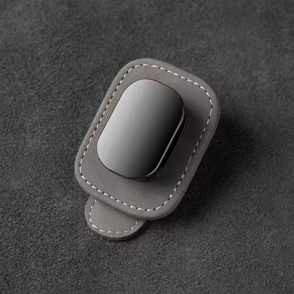 Solglasögonhållaren fästs på bilens solskydd och håller dina glasögon inom räckhåll. Den förhindrar att dina glasögon försvinner eller skadas under körning. Ett enkelt och säkert sätt att förvara dina glasögon när du är på väg.