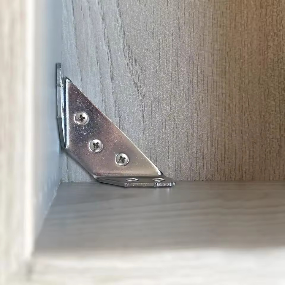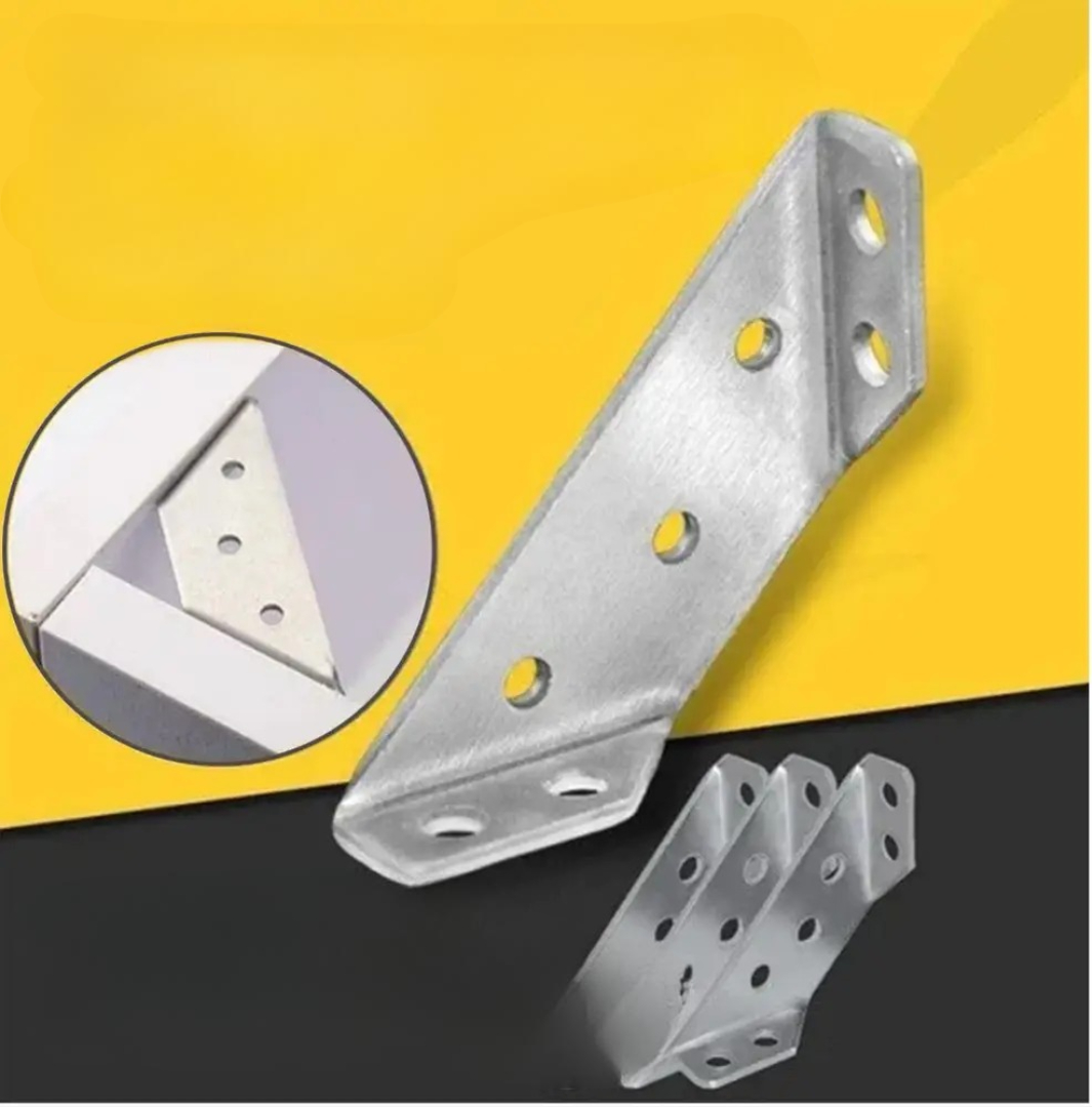 De här kraftiga hörnförbanden i metall är den perfekta lösningen för att stabilisera möbler, hyllor, skåp och träramar. Deras solida triangulära design säkerställer maximal bärförmåga och långvarig hållbarhet. Säg adjö till vingliga bord och hängande hyllor – installera en gång och njut av livslång styrka.