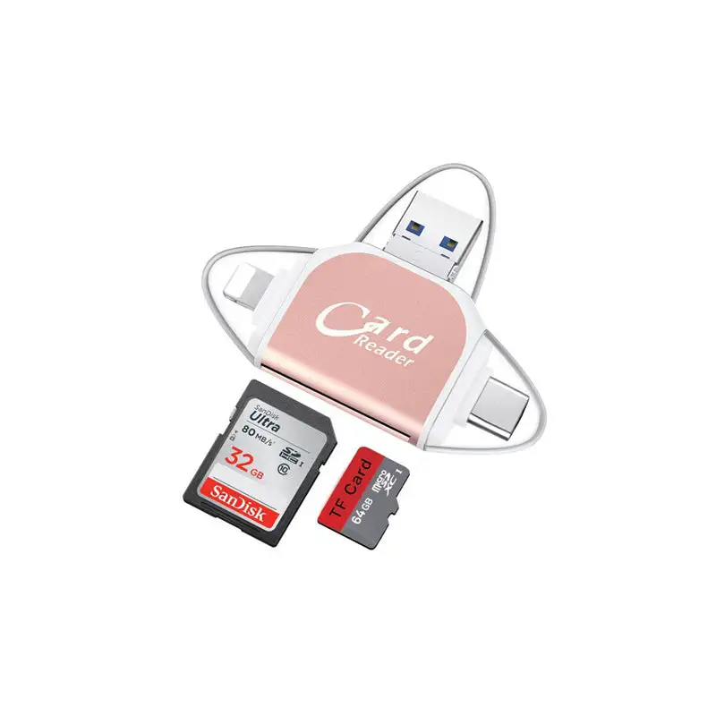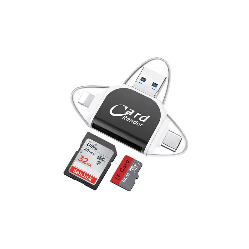 Med denna 4-i-1-kortläsare kan du snabbt flytta foton, videor, musik och dokument mellan din telefon, surfplatta och dator. Med flera portar och en kompakt design är det det ultimata allt-i-ett-verktyget för att hantera dina data när du är på språng.