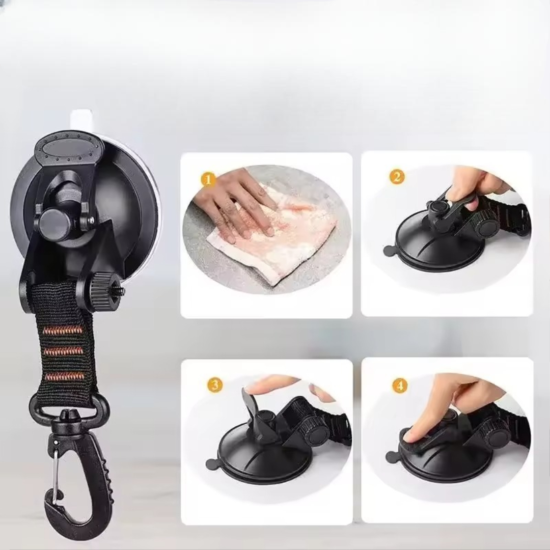 Dessa sugkoppskrokar är perfekta för camping, bilresor eller vardagsbruk. De är utformade för att fästa ordentligt på alla släta ytor och hjälper dig att fästa tält, presenningar eller utrustning utan att borra eller skada ditt fordon. De är lätta men ändå starka och passar utmärkt för utomhusbruk eller till och med inomhus i köket eller badrummet.