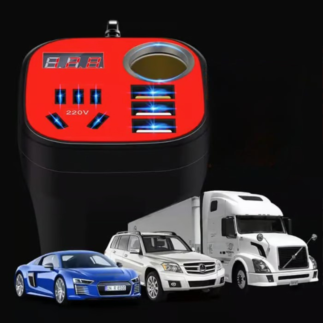 Denna innovativa biladdare i koppformat passar perfekt i bilens kopphållare och levererar rejäl laddningskraft. Med flera USB-portar, AC-uttag, en snabbladdande QC 3.0-port och en ljusstark LCD-skärm är den perfekt för bilresor, arbete från bilen och vardagsanvändning.