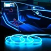 LED-remsan för bilar är mycket flexibel och kan böjas i olika former för att passa perfekt i din bils interiör. Du kan trimma den till önskad längd för ett helt anpassat utseende. Dess mångsidighet gör den idealisk för att dekorera instrumentbrädor, konsoler och andra bilinredningar.