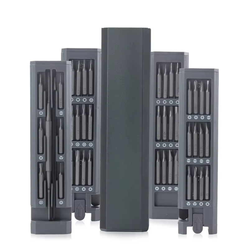 Denna 44-i-1 magnetiska skruvmejselsats hanterar allt från elektronik till möbler och ger dig kraft, precision och bärbarhet i ett enda snyggt verktyg. Oavsett om du fixar vitvaror, justerar cyklar eller reparerar leksaker ersätter denna multifunktionella uppsättning röriga verktygslådor. Dess högkvalitativa aluminiumstål är starkt, lätt och byggt för att hålla – perfekt för hem, teknik eller hobby.