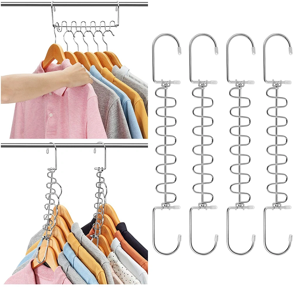 Denna multifunktionella galge låter dig organisera upp till 9 plagg vertikalt, vilket frigör utrymme och håller din garderob snygg och prydlig. Perfekt för små garderober, delade utrymmen eller alla som är trötta på trassliga galgar!
