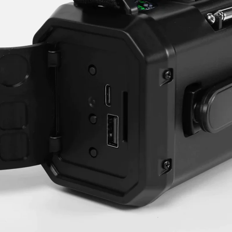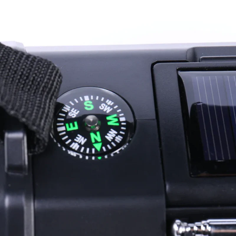 Nödradio Pro – 10,000mAh inbyggd Powerbank, Kompass, Ficklampa och Solceller