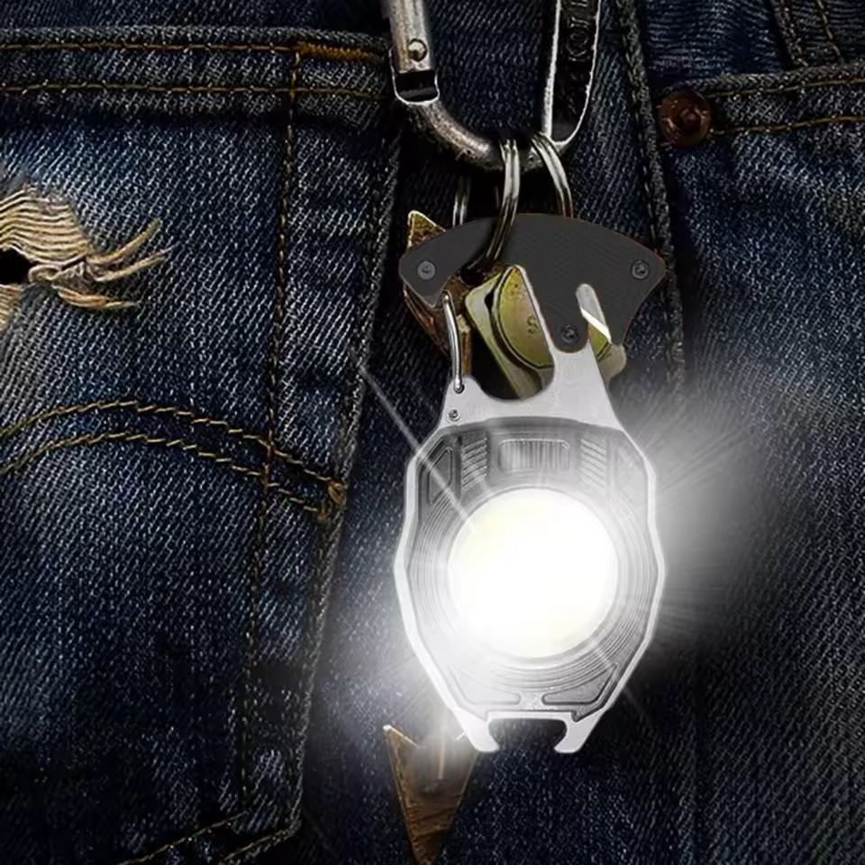 Ficklampan i nyckelringen är mer än bara ett ljus – det är ett mini-överlevnadskit! Den är kompakt men kraftfull och kombinerar ficklampa, bältesskärare, visselpipa, skruvmejsel, flasköppnare och fönsterhammare i en lättviktsdesign. Perfekt för camping, vandring, nödsituationer eller daglig användning.