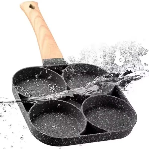 Omelettpannan är tillverkad av högkvalitativ aluminium, vilket ger snabb och jämn värmefördelning. Detta hjälper till att tillaga ägg, pannkakor och andra livsmedel utan heta fläckar. Njut av perfekt tillagade måltider varje gång med mindre väntan.