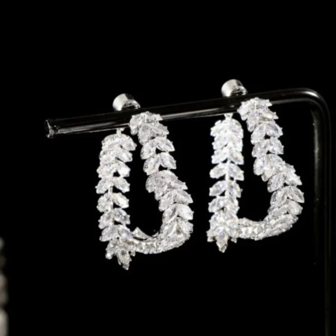 De här örhängena är designade för att lysa med varje rörelse du gör. Med sina elegant böjda linjer och skimrande stenar ger de en djärv, lyxig touch till alla outfits – dag som natt. Perfekt för speciella tillfällen eller för att lyfta din vardagslook.