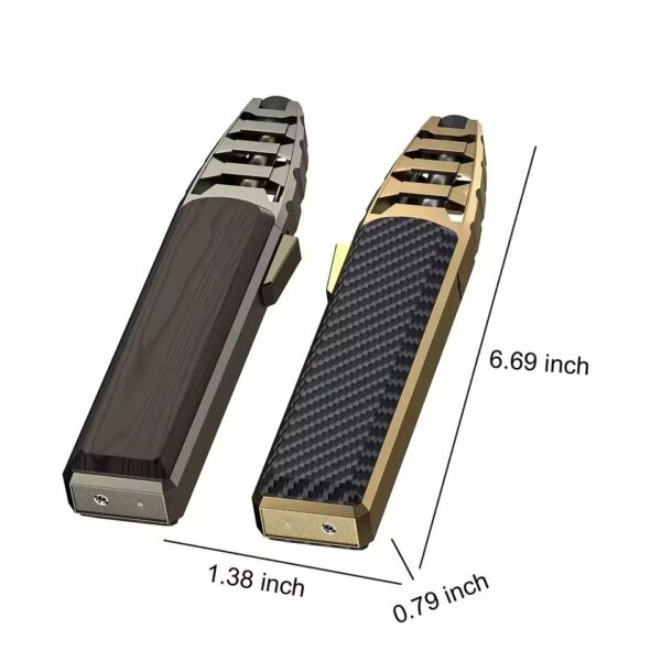 Turbojet-tändaren ger en kraftfull jetflamma som förblir stark även i blåsiga förhållanden. Det gör den idealisk för utomhusbruk, oavsett om du tänder en cigarr, lagar mat eller campar. Lågan är stadig och pålitlig för olika behov.