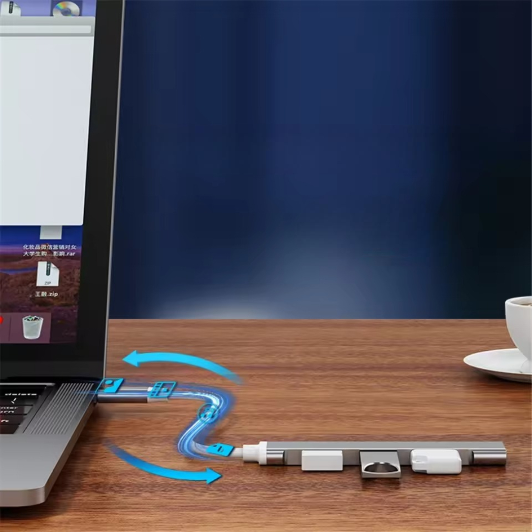 Den här höghastighets USB typ C-hubben ger dig omedelbar åtkomst till flera portar så att du kan ansluta tangentbord, möss, USB-enheter, hörlurar, kameror och mycket mer – allt från en enda USB-C-anslutning. Den ger snabb dataöverföring, bred enhetskompatibilitet och en kompakt design som är perfekt för arbete, resor och daglig användning.