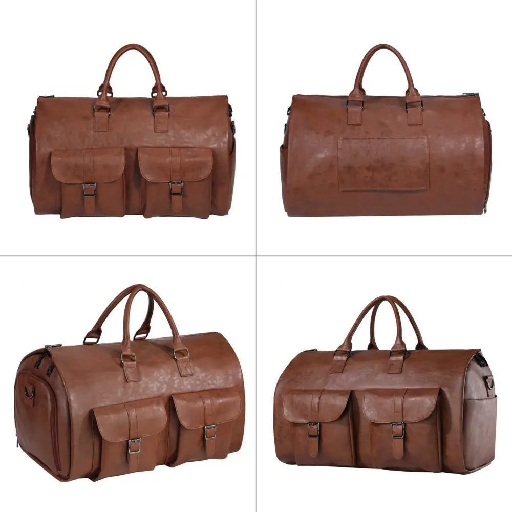 Denna duffelväska för handbagage är den perfekta blandningen av stil och funktionalitet. Den är utformad för att bära dina kläder snyggt och samtidigt hålla dem skrynkelfria och är perfekt för affärsresor, bröllop, weekendresor eller semesterresor. Den är tillverkad av högkvalitativt PU-material, ser snygg ut och känns hållbar. Den rymliga designen gör att du kan packa kläder, skor och väsentliga saker i en väska – inget behov av separata resväskor eller plaggskydd.