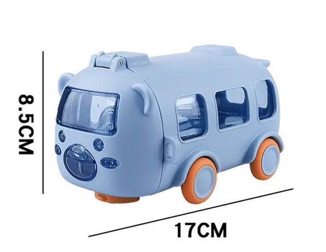 Den här bedårande bussformade vattenmuggen är inte bara en dryckesbehållare – den är en leksak och resekompis i ett! Med inbyggda hjul, en rolig design och en praktisk bärrem kommer barnen att älska att ta med den överallt.