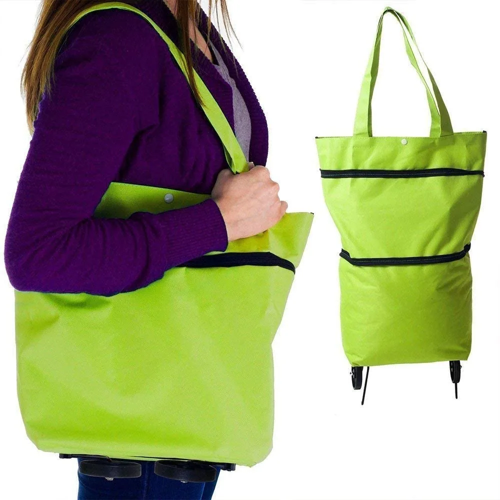 Denna kundvagn gör livet enklare. Den är lätt, stark och förvandlas till en väska som du kan bära eller hänga upp. När du är klar viker du ihop den och förvarar den. Den är perfekt för shopping, affärsbesök eller att bära saker med. Perfekt för alla som vill handla smart och spara energi.