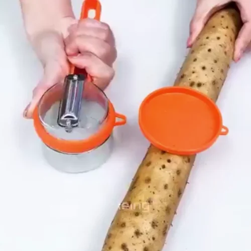 This 2-in-1 peeler comes with a built-in storage box that collects peels as you work, keeping your countertop clean. The sharp stainless steel blade peels smoothly and quickly, while the ergonomic handle gives you full control. It saves time, reduces cleanup, and makes everyday food prep easier.