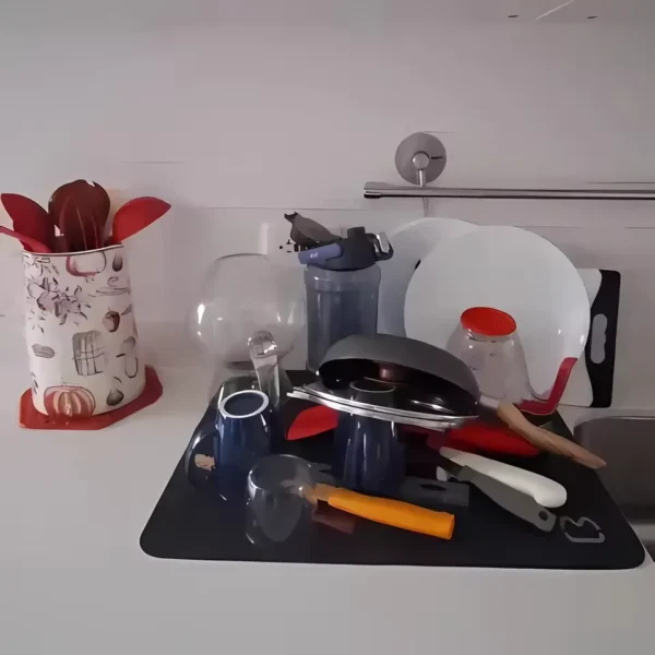 With a secure bottom layer, the absorbent drain pad firmly sticks to the surface and stays in place. This prevents slipping and ensures stability, even on smooth countertops.