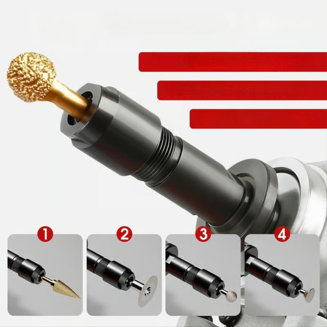 This adapter allows you to attach different grinding bits to your angle grinder, giving you the precision and versatility of a straight grinder while keeping the power of your original tool. It is easy to install, durable, and designed to improve your work efficiency instantly.