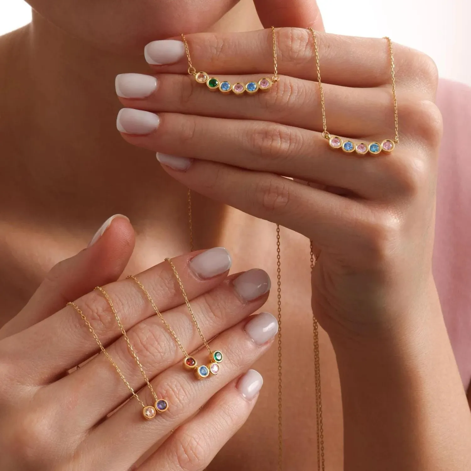 Personalize your necklace with 1 to 8 brilliant zirconia birthstones and create a unique and meaningful piece of jewelry. Available in gold and silver.