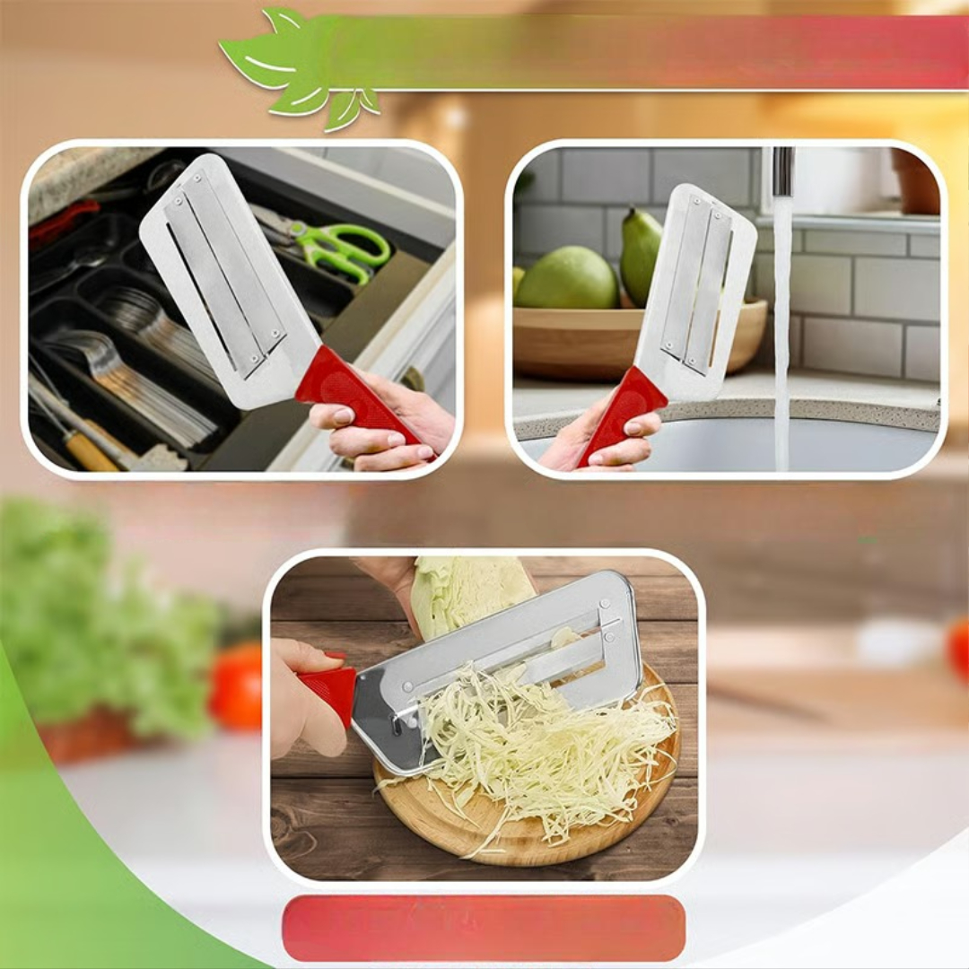 This cabbage slicer helps you prepare coleslaw, kimchi, sauerkraut, and many other dishes in seconds. Its sharp double-layer blades and comfortable handle make slicing smoother, faster, and more precise than using a knife.