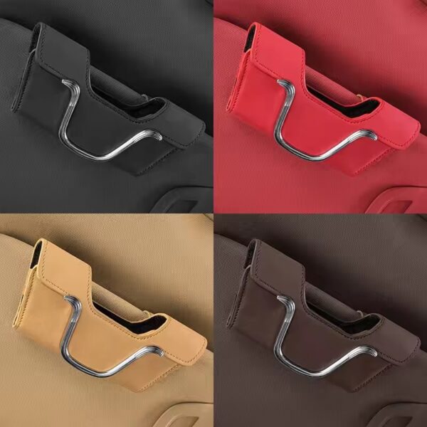 The car glasses holder features a convenient clip-on design that easily attaches to your car’s sun visor. This ensures quick access to your sunglasses while driving. The strong clip keeps the holder in place, preventing it from slipping or falling.