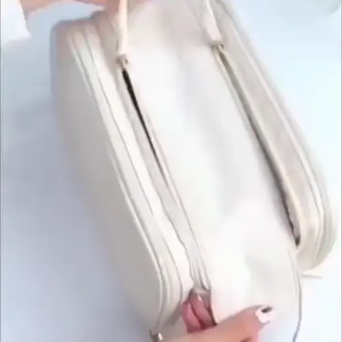 This spacious and waterproof cosmetic bag is designed to hold all your beauty essentials — from makeup and skincare to brushes and accessories. With its durable vegan leather, strong zipper, and convenient handle, it’s perfect for travel or everyday storage at home.