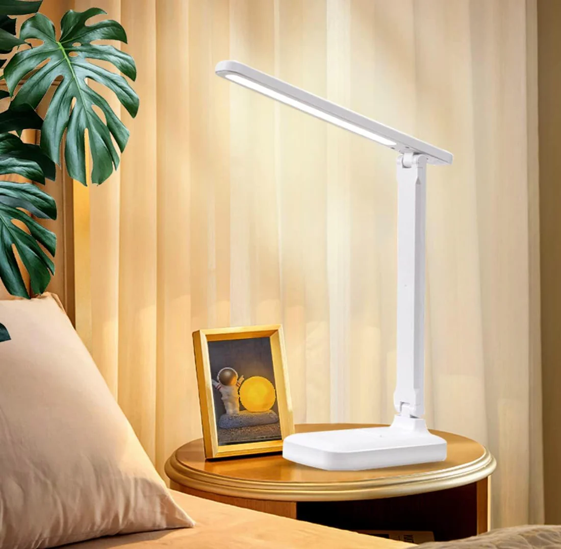 This smart desk lamp offers three brightness levels, letting you choose the ideal lighting for reading, studying, or working at night. Its rechargeable design means you can use it anywhere — with or without a USB cable. Compact, lightweight, and modern, it’s the perfect lighting companion for your desk, bedroom, or office.