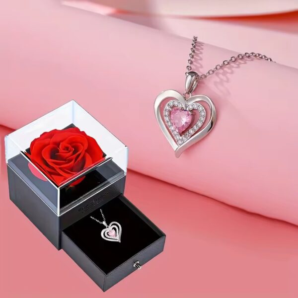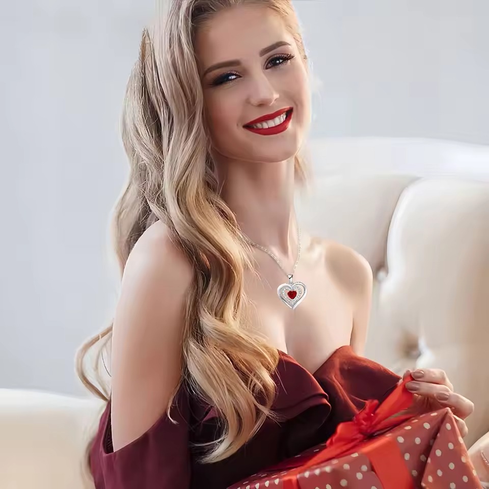 This double heart necklace features a stunning intertwined heart design, symbolizing love and connection. The sparkling crystals and heart-shaped blue stone add a touch of elegance. Perfect for any occasion, this necklace enhances both casual and formal outfits.