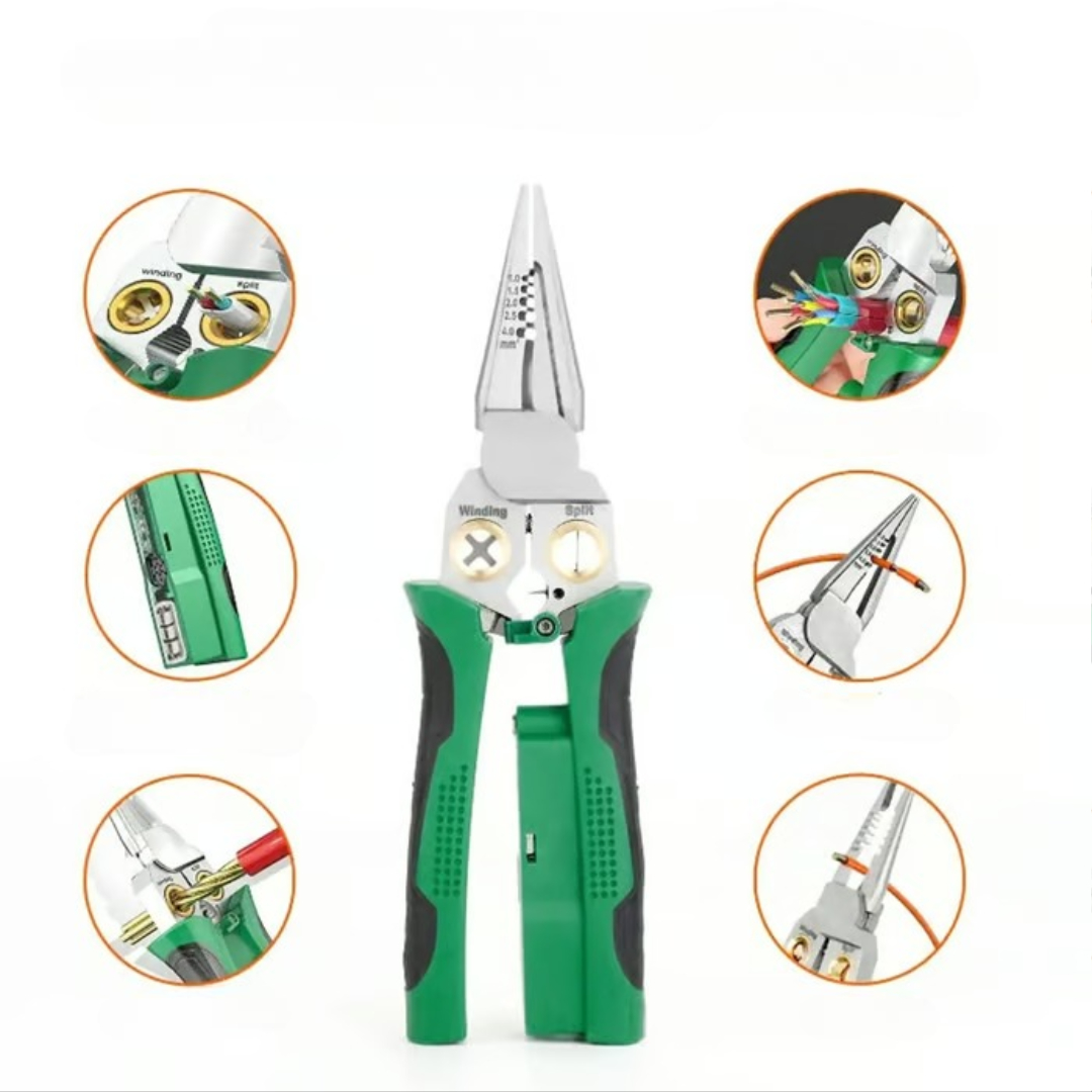 This electrical wire stripper pliers combine multiple professional functions into a single, durable tool designed for fast, safe, and accurate electrical work. Whether you’re an electrician or a DIY user, this tool makes wiring easier by replacing several separate tools with one efficient solution.
