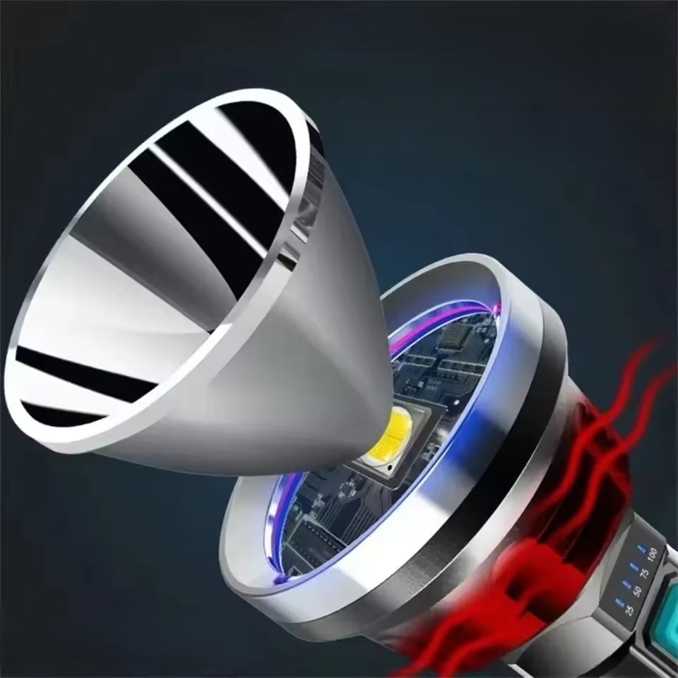 This ultra-powerful flashlight lights up distances up to 4800 meters with ease. Whether you’re outdoors at night or facing an emergency power outage, it delivers reliable, long-lasting brightness to keep you safe and prepared. Built with a bright LED core, 3 lighting modes, and a rechargeable battery, it’s your go-to light for hiking, camping, cycling, and everyday use. Compact and waterproof, it’s ready for any situation, rain or shine.