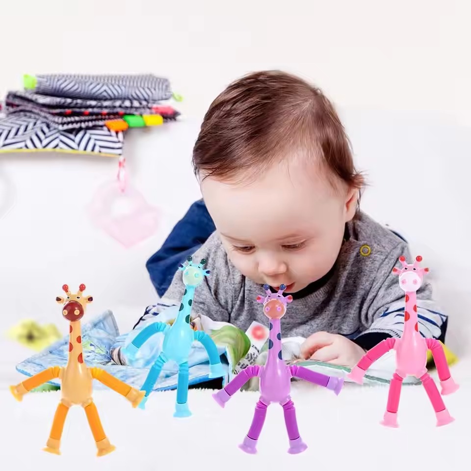 With its pop tube feature, the flexible giraffe toys make a fun popping sound when stretched. The suction cups on the feet allow the toy to stick to smooth surfaces. This adds extra ways to play and keeps children entertained.