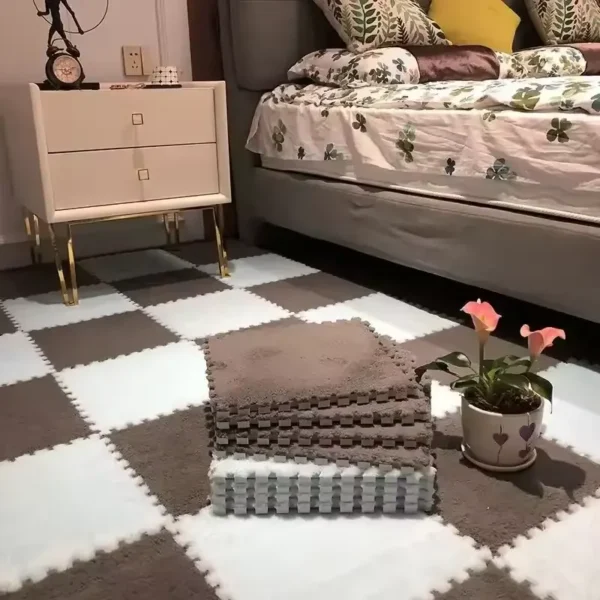 These soft, fluffy puzzle tiles transform any hard floor into a comfortable, cushioned space perfect for playing, crawling, or exercising. The interlocking design lets you customize the size and shape to fit any room, while the thick foam padding protects both your floors and your little ones.