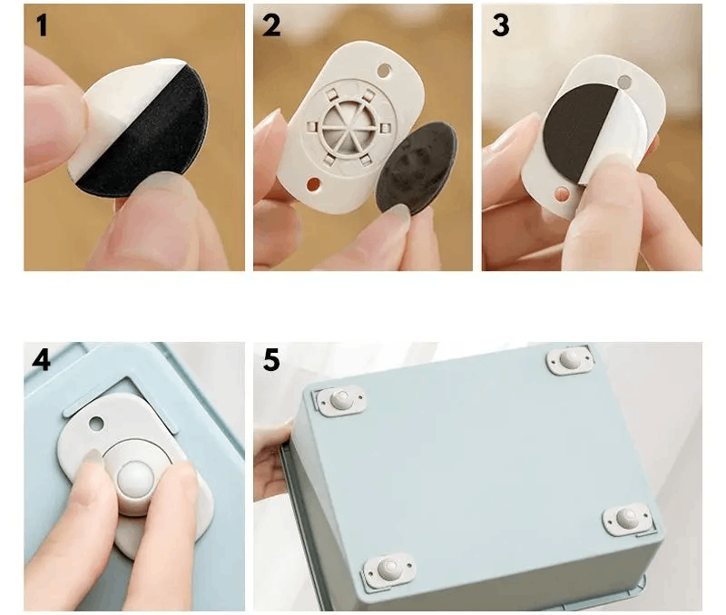 ✅ Self-adhesive wheels – no tools or screws needed