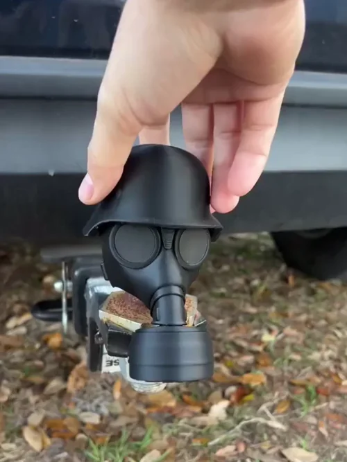 This gas mask cap is a 3D-printed trailer hitch cover that shields your hitch from dust, rust, and damage—all while adding a standout design to the back of your vehicle. Built from durable PLA material, it keeps your hitch clean and safe in any weather.