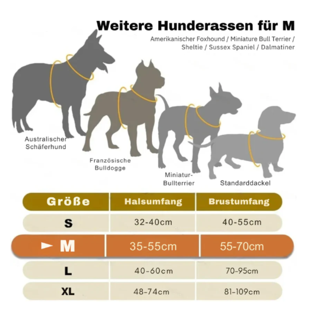 Our sizes are designed to perfectly cover a variety of popular dog breeds.