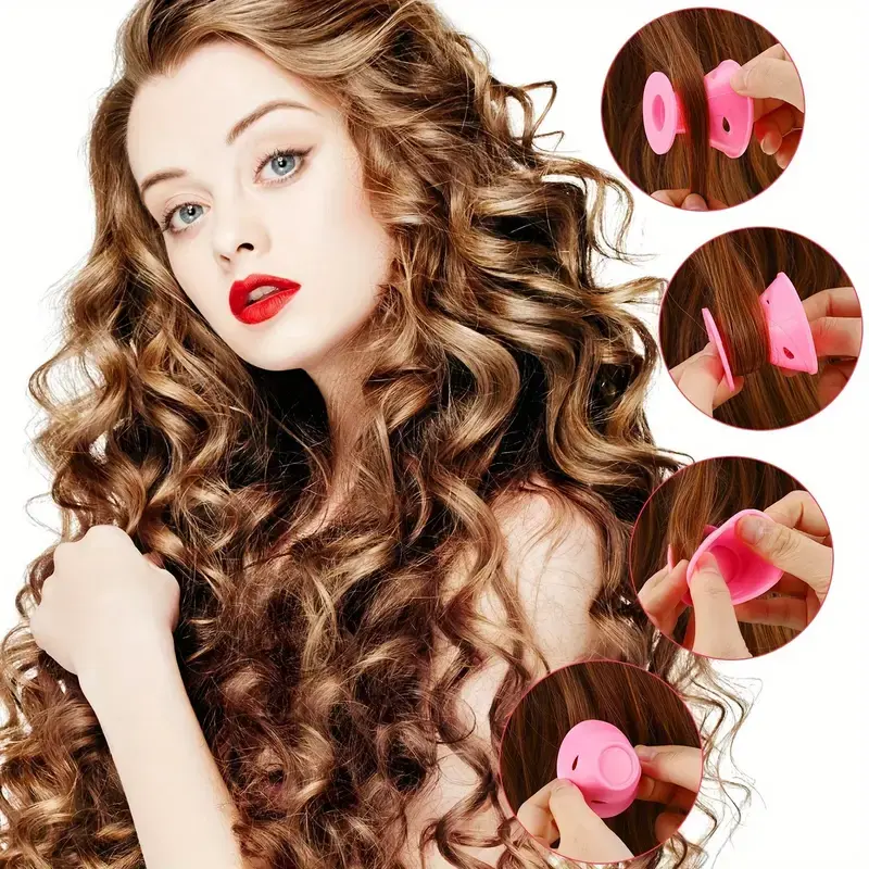 These magic silicone hair curlers give you beautiful, bouncy curls without heat, pins, or damage—perfect for all hair types and totally beginner-friendly. Made from soft, flexible silicone, these lightweight curlers are reusable, washable, and ideal for travel or daily use. Just roll them in damp hair, wait, and reveal smooth, natural curls without the need for heat styling.