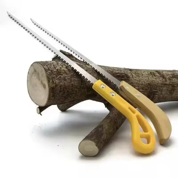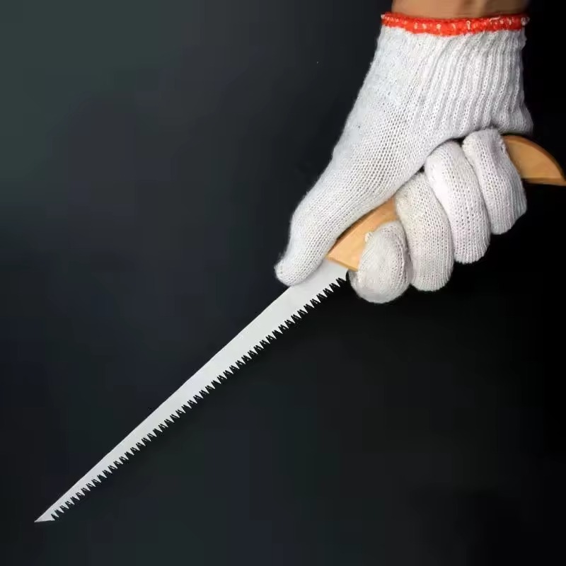 The hand saw tool is crafted from premium carbon steel, ensuring a sharp, durable blade for efficient cutting. The wooden or plastic handle provides a comfortable grip, making the saw easy to handle and perfect for various cutting tasks.