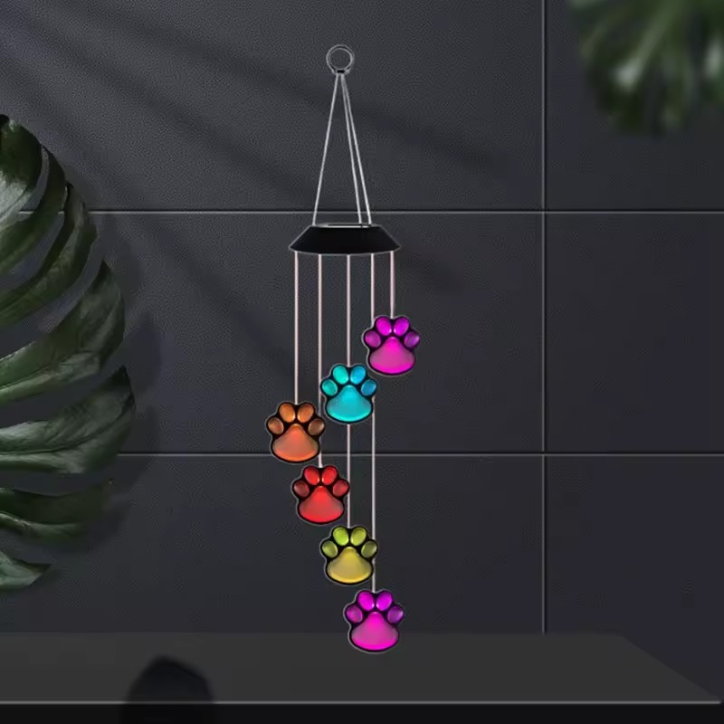 The hanging paws light up with soft, changing colors, creating a warm and magical atmosphere. The LED lights automatically turn on in the dark, cycling through different colors. Perfect for decorating gardens, balconies, or indoor spaces.